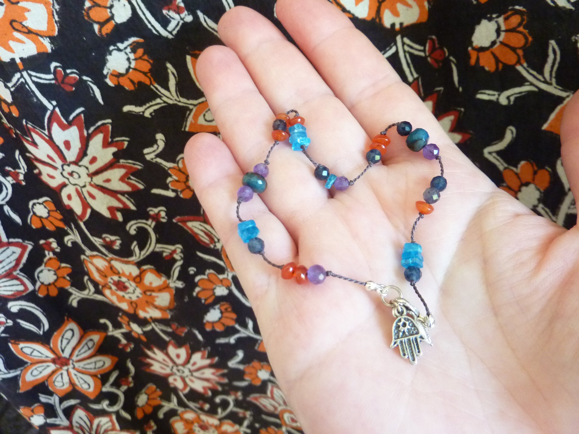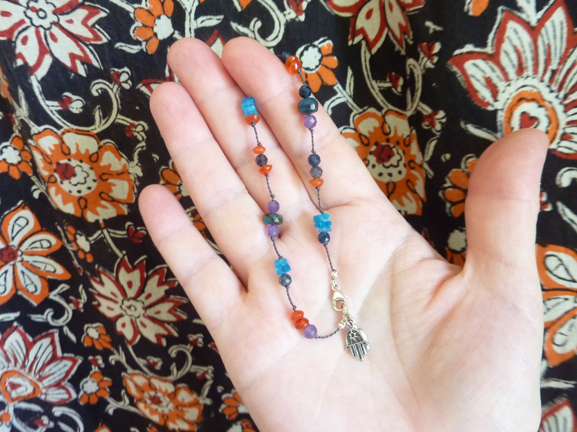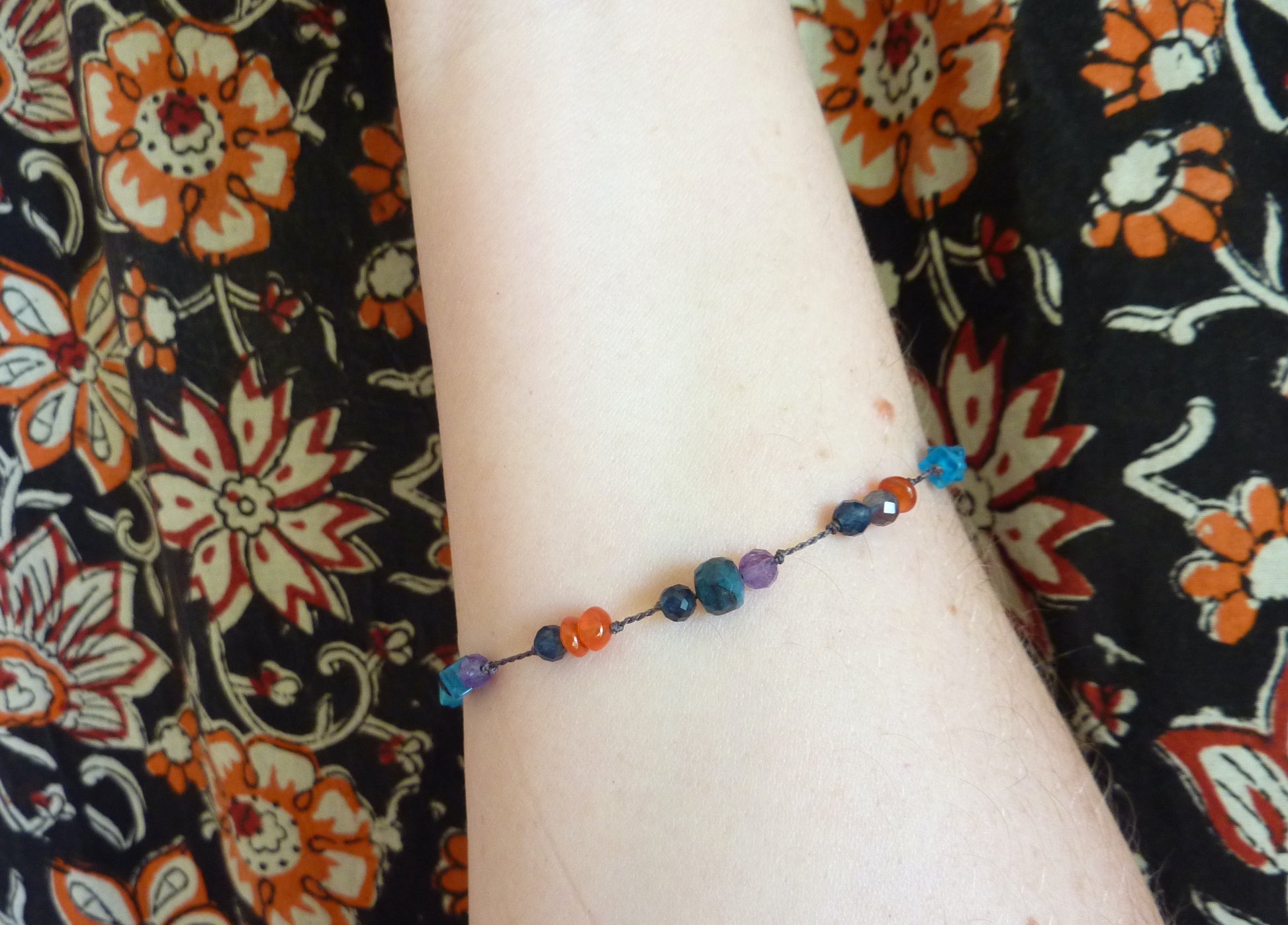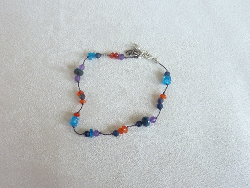Kanti | Bracelet fin de pierres nouées apatite bleue cornaline