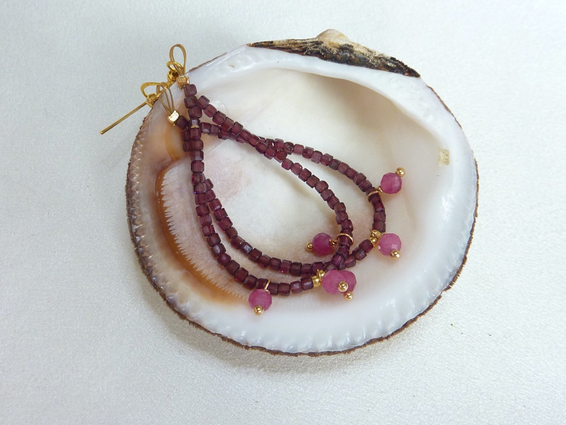 . pierres semi-précieuses, naturelles, de qualité supérieure : petits cubes de grenat rouge du Brésil, breloques de tourmaline rose